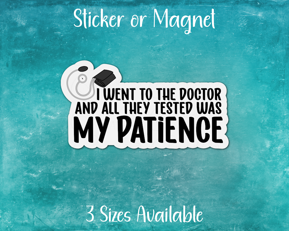 Chronic Illness Appointment Humor Sticker or Magnet | I Went to the Doctor and All They Tested Was My Patience