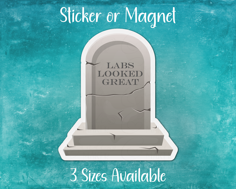 Chronic Illness Dark Humor Sticker or Magnet | Labs Looked Great, Tombstone