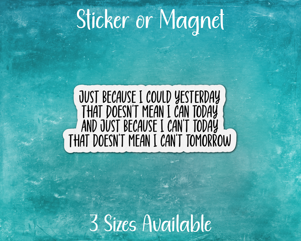 Chronic Illness Sticker or Magnet | Yesterday Today Tomorrow, Could Can Can't