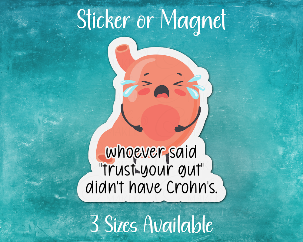 Funny Chronic Illness Sticker or Magnet | Whoever Said Trust Your Gut Didn't Have Crohn's