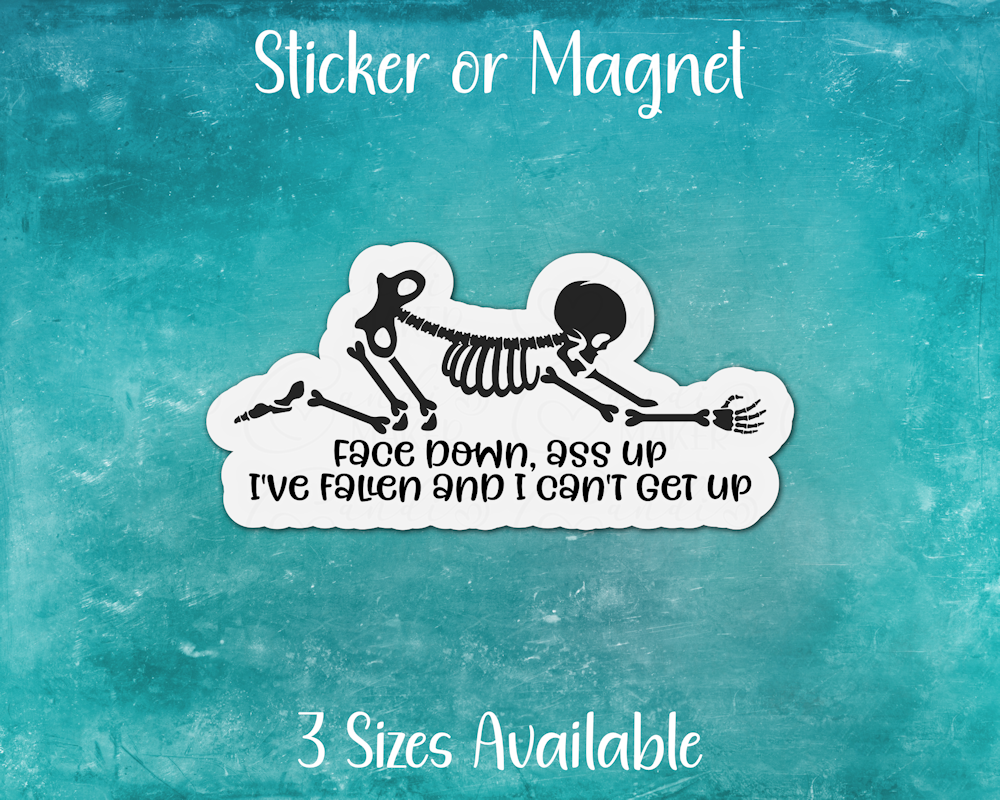 Funny Clumsiness Sticker or Magnet | Face Down Ass Up I've Fallen and I Can't Get up