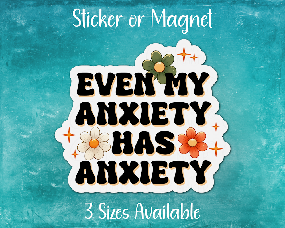 Retro Floral Mental Health Humor Sticker or Magnet | Even My Anxiety Has Anxiety