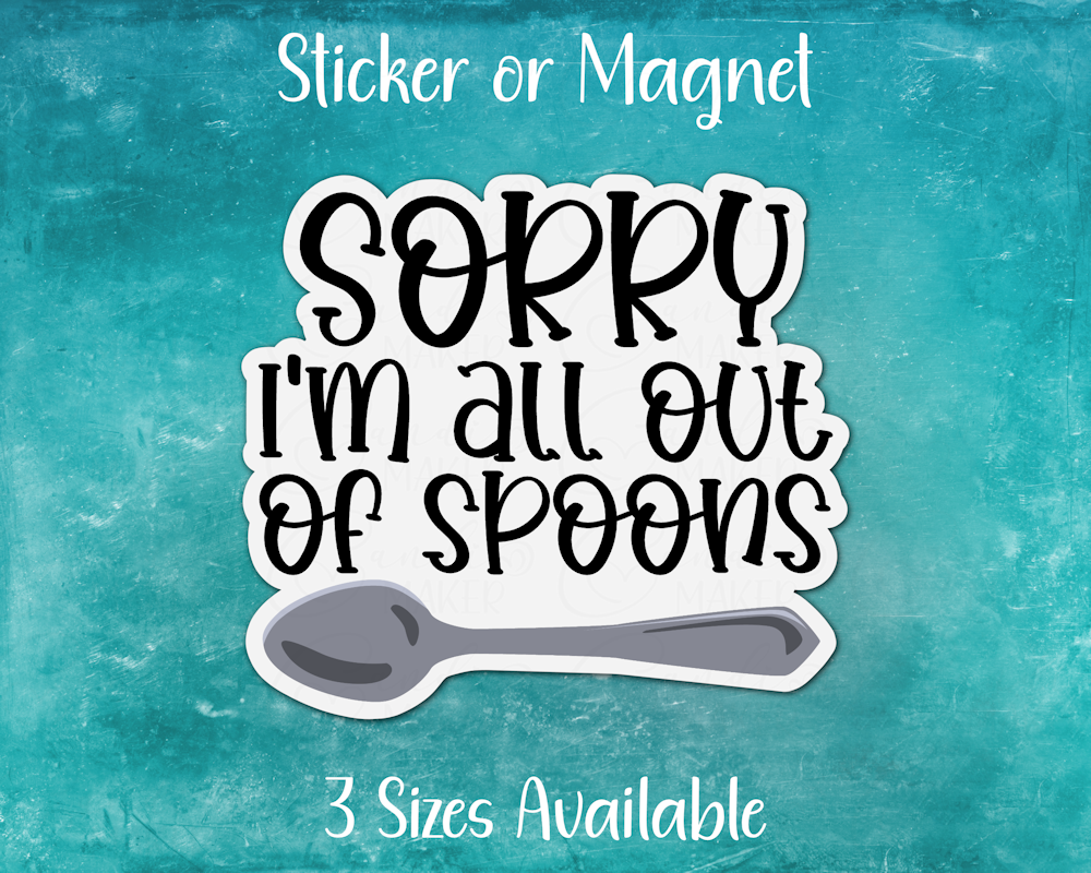 Spoon Theory Humor Sticker or Magnet | Sorry I'm All Out of Spoons